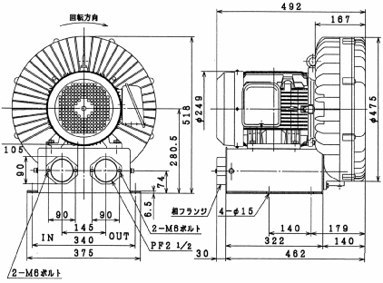 玉軸受 ブロワ側(cè):6308ZZ モートル側(cè):6306ZZ