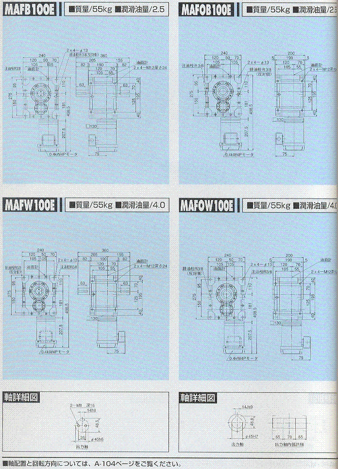 MAF100-E,MAFO100-E外形尺寸表 1(0.4KW)