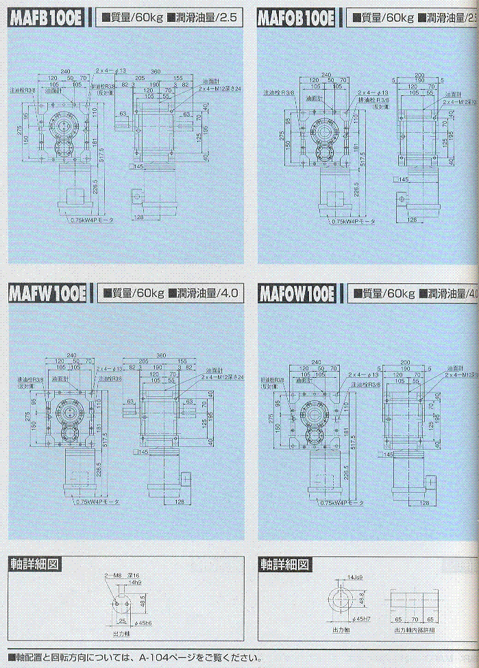 MAF100-E,MAFO100-E外形尺寸表 1(0.75KW)