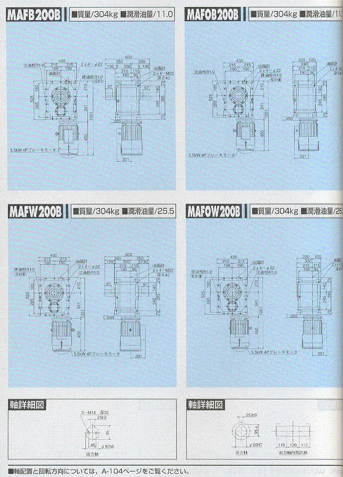 MAF200-B,MAFO200-B(5.5KW)外形尺寸表 1