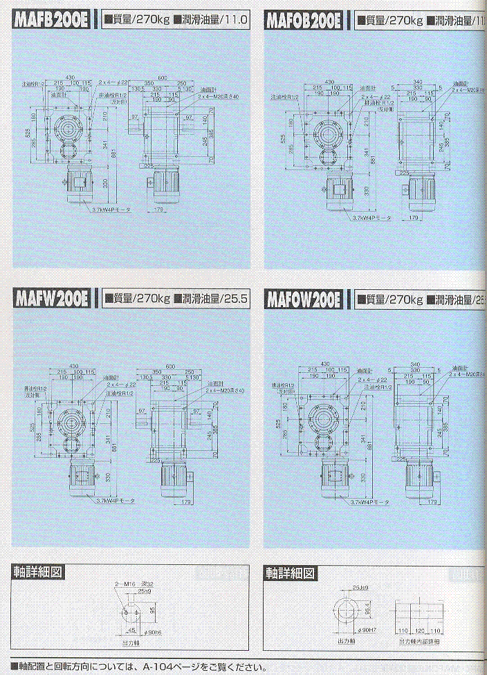 MAF200-E,MAFO200-E外形尺寸表 1(3.7KW)