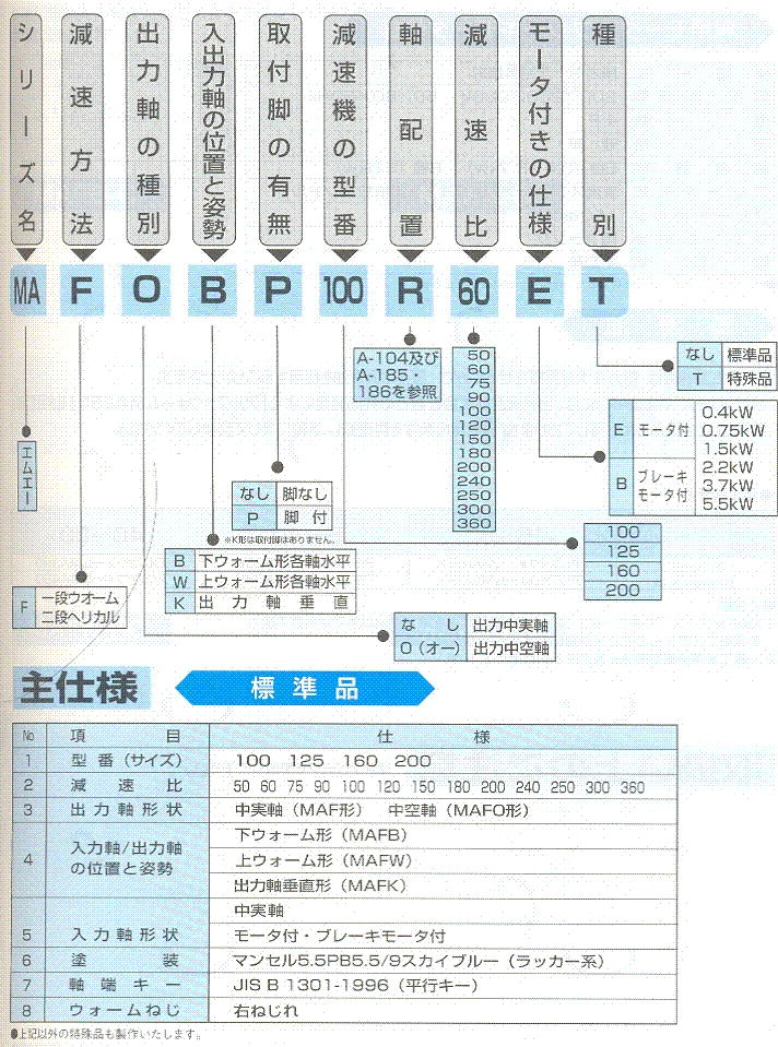 MA系列型號表示