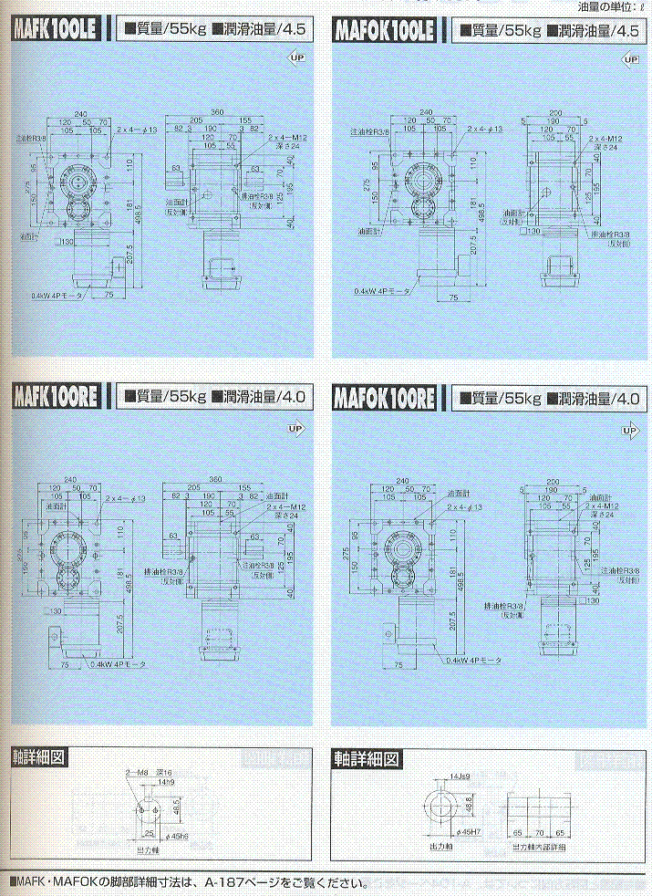 MAF100-E,MAFO100-E外形尺寸表 2(0.4KW)