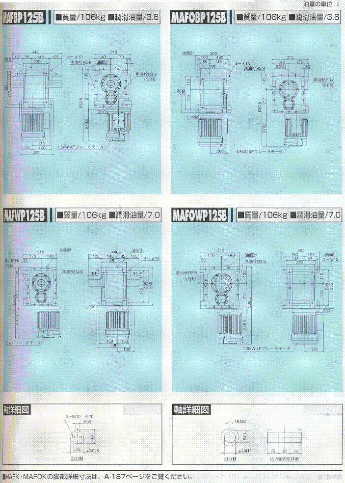 MAFP125-B,MAFOP125-B外形尺寸表(1.5kw)