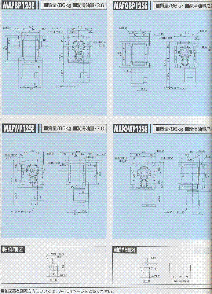 MAFP125-E,MAFOP125-E外形尺寸表(0.75kw)