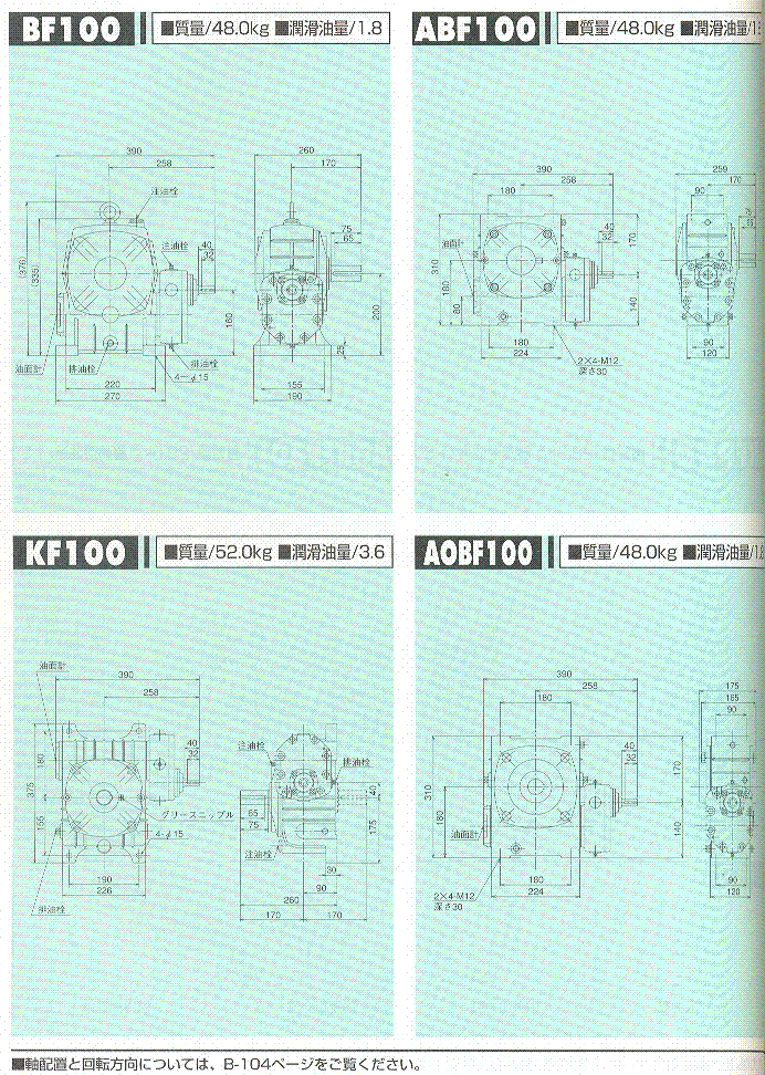 F/U/AF/AOF系列100(二段式蝸輪減速機)外形尺寸表 1