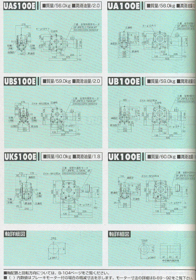 F/U/AF/AOF系列100E(二段式蝸輪減速機(jī))外形尺寸表 1