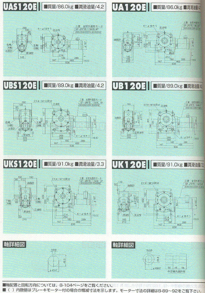 F/U/AF/AOF系列120E(二段式蝸輪減速機)外形尺寸表 1
