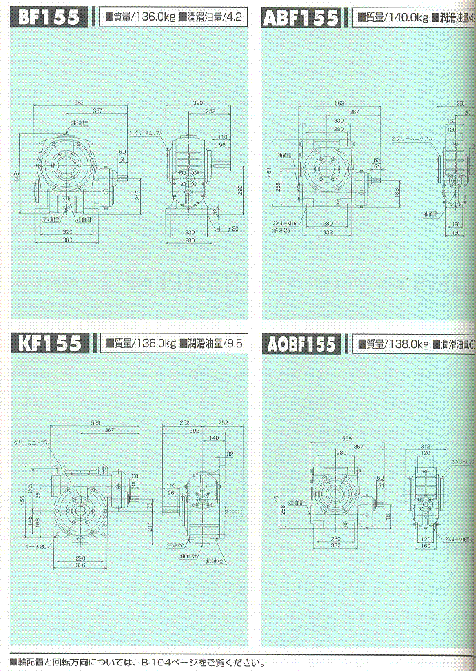 F/U/AF/AOF系列155(二段式蝸輪減速機)外形尺寸表 1