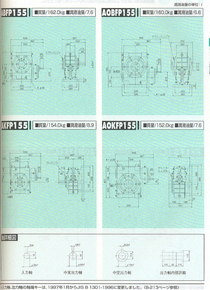 F/U/AF/AOF系列155(二段式蝸輪減速機)外形尺寸表 2