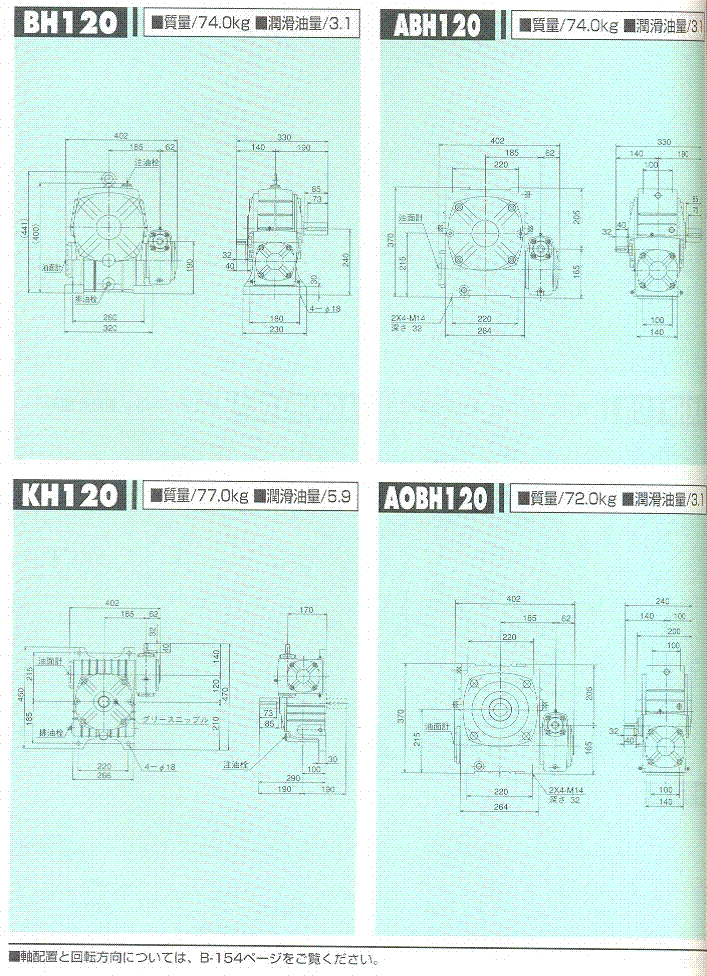 H系列120(二段式蝸輪減速機)外形尺寸表 1