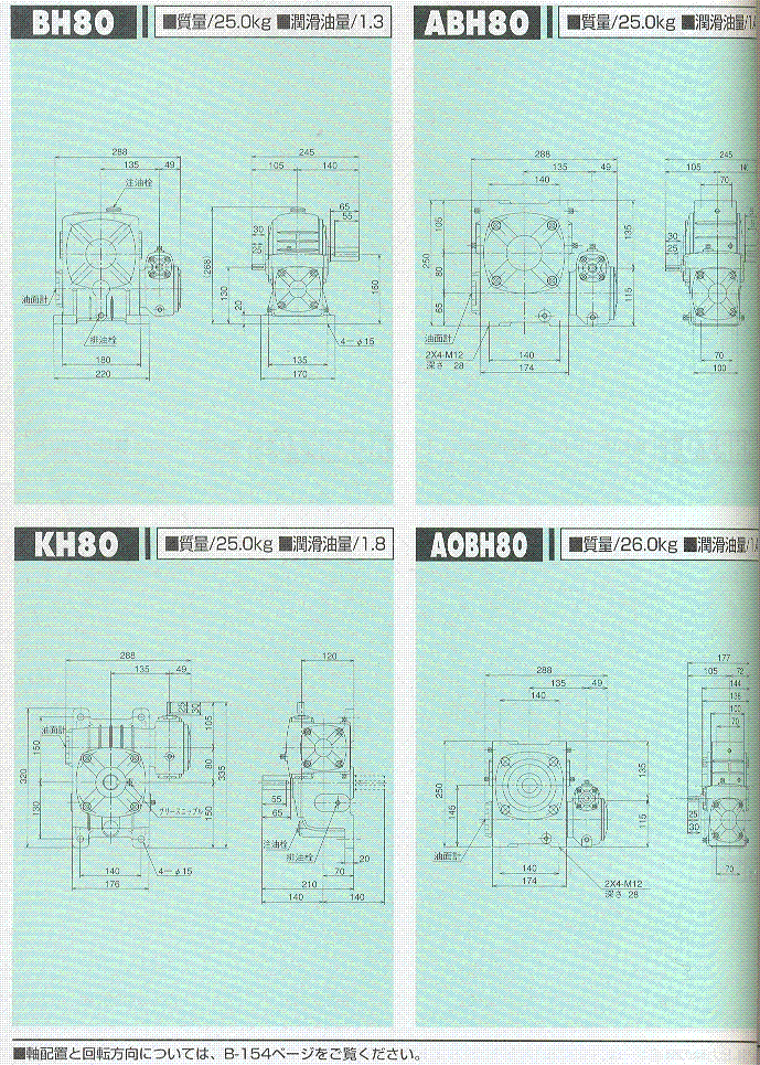 H系列80(二段式蝸輪減速機)外形尺寸表 1
