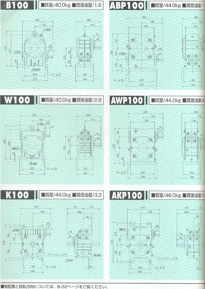 S/A/AO系列100(一段式蝸輪減速機)外形尺寸表 1