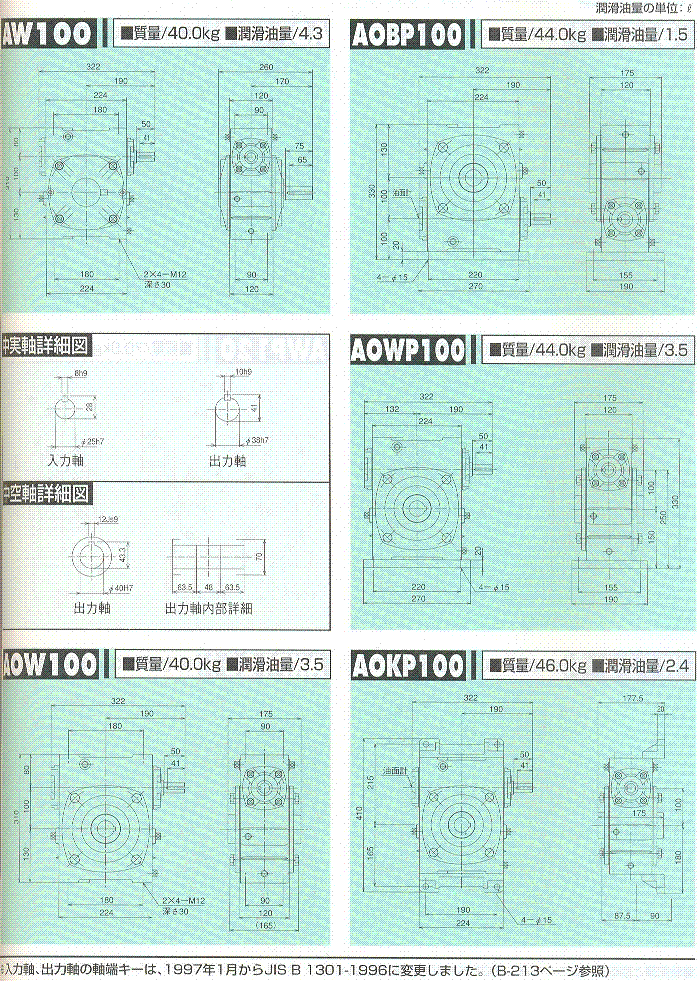 S/A/AO系列100(一段式蝸輪減速機)外形尺寸表 2