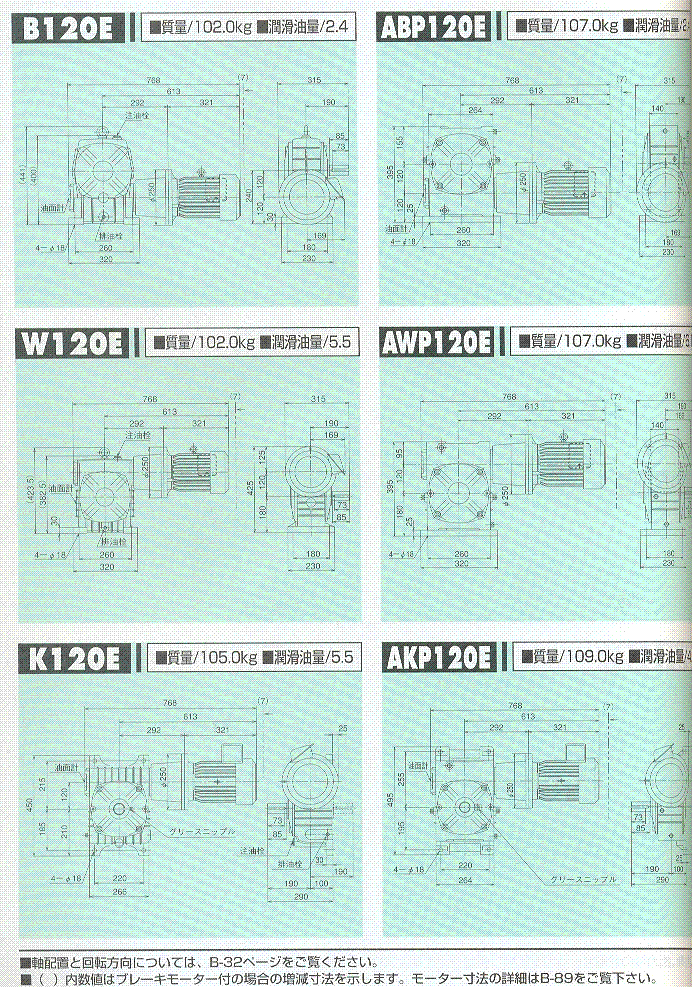 S/A/AO系列120E(一段式蝸輪減速機)外形尺寸表 1