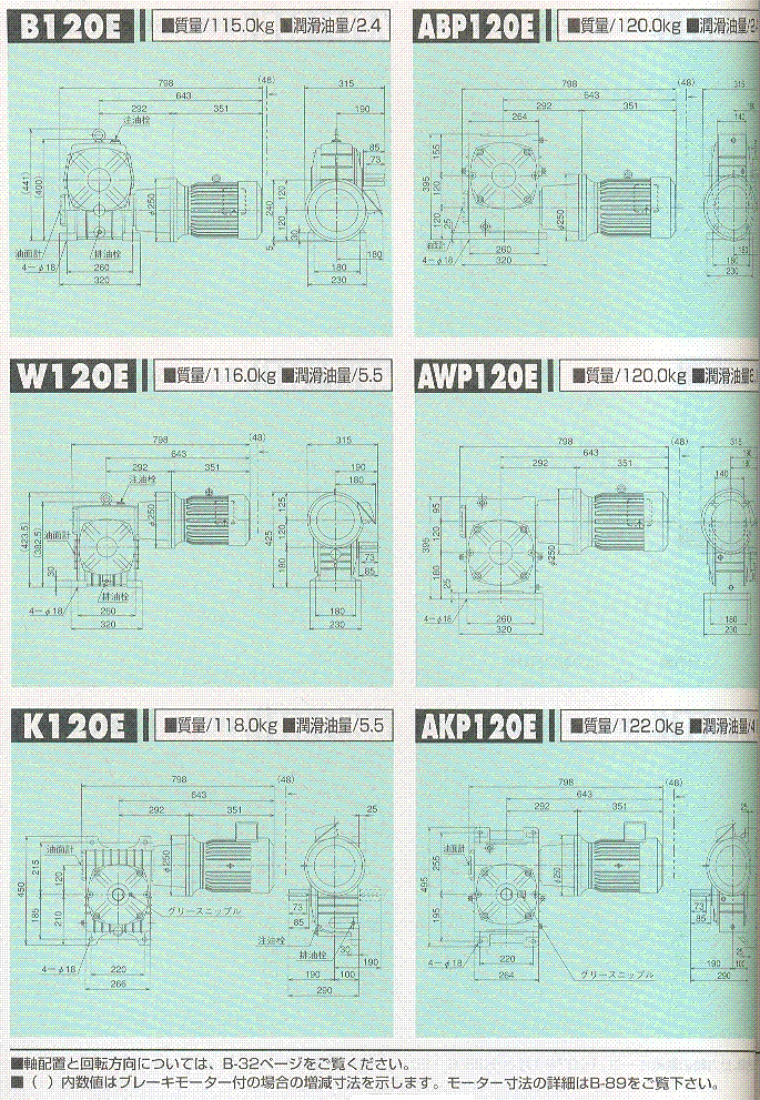 S/A/AO系列120E(一段式蝸輪減速機)外形尺寸表 1