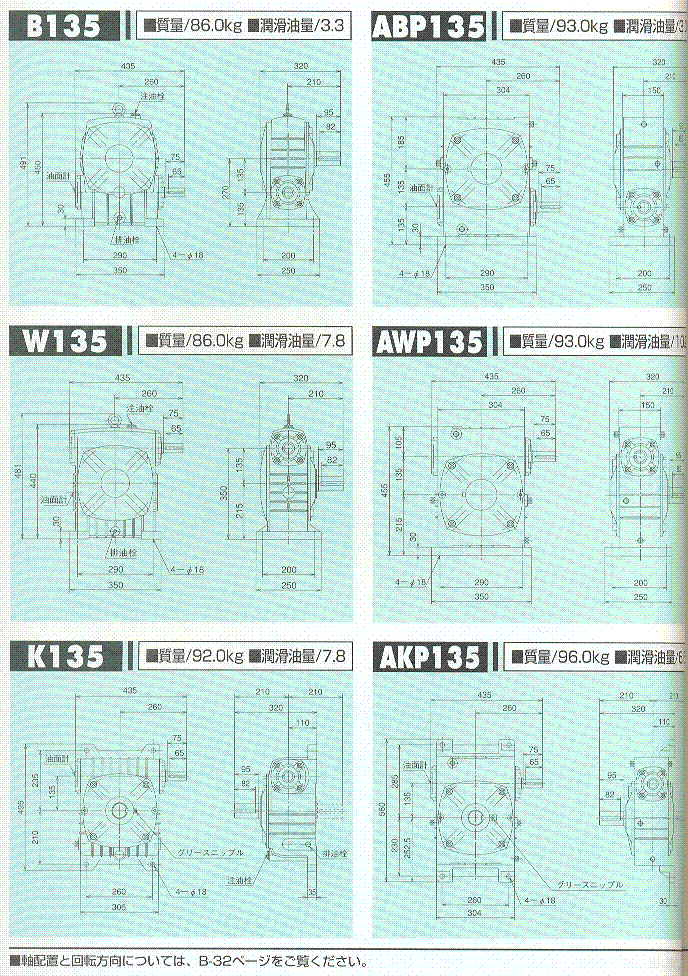 S/A/AO系列135(一段式蝸輪減速機)外形尺寸表 1
