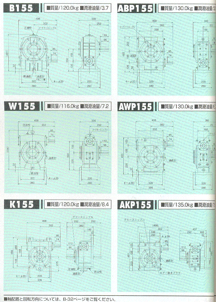 S/A/AO系列155(一段式蝸輪減速機(jī))外形尺寸表 1
