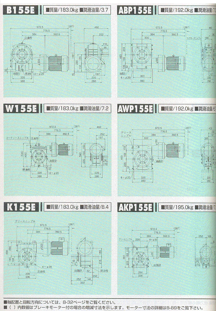 S/A/AO系列155E(一段式蝸輪減速機)外形尺寸表 1