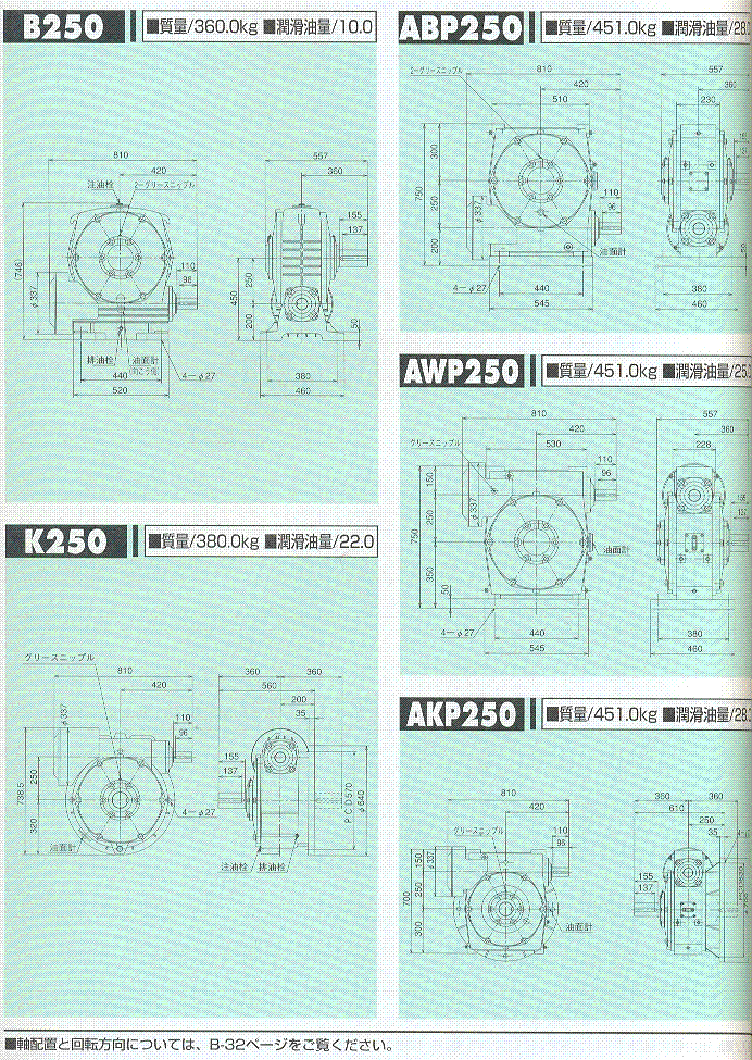 S/A/AO系列250(一段式蝸輪減速機)外形尺寸表 1