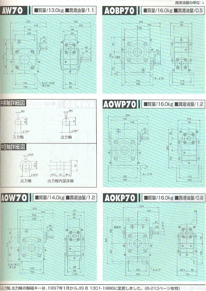 S/A/AO系列70(一段式蝸輪減速機)外形尺寸表 2