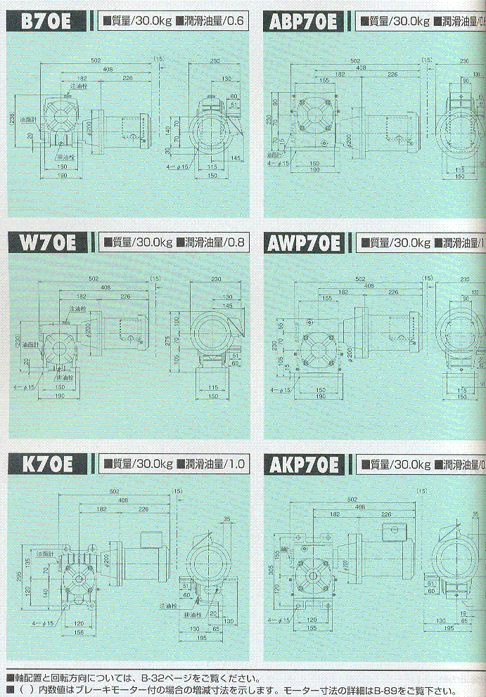S/A/AO系列70E(一段式蝸輪減速機)外形尺寸表 1