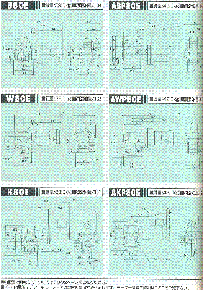 S/A/AO系列80E(一段式蝸輪減速機)外形尺寸表 1