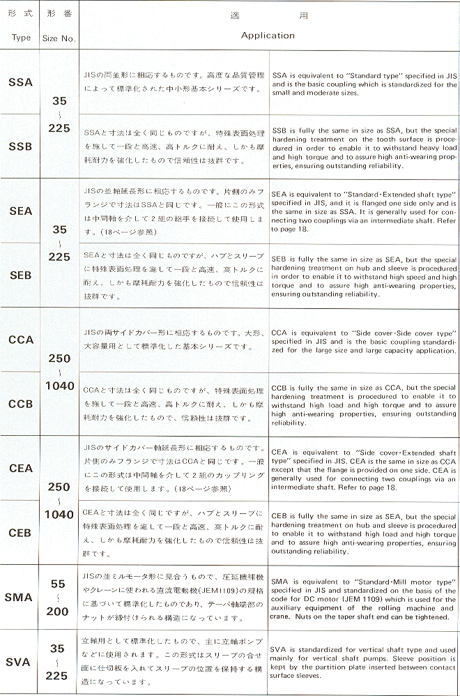 標準系列特長及用途