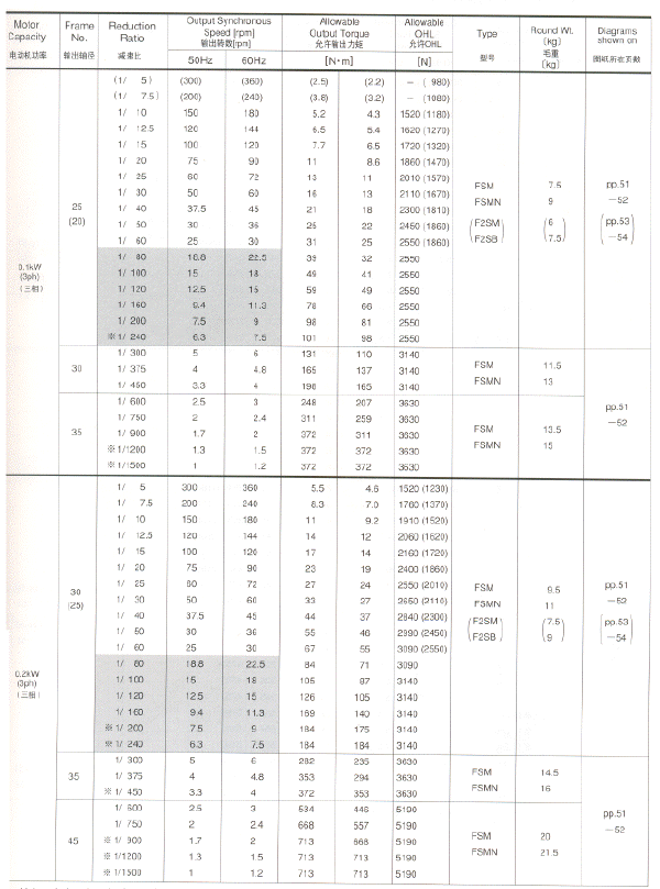注意:性能表中括號(hào)里面的數(shù)值是F2S型