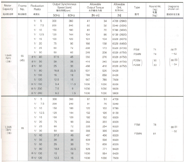 2.F2S型1.5kw,減速比為1/40至1/60的旋轉方向,與上述性能表所記載的相反
