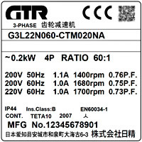 標準齒輪減速機及下表中所列出的供電電壓規格的齒輪減速機均須取得認證。