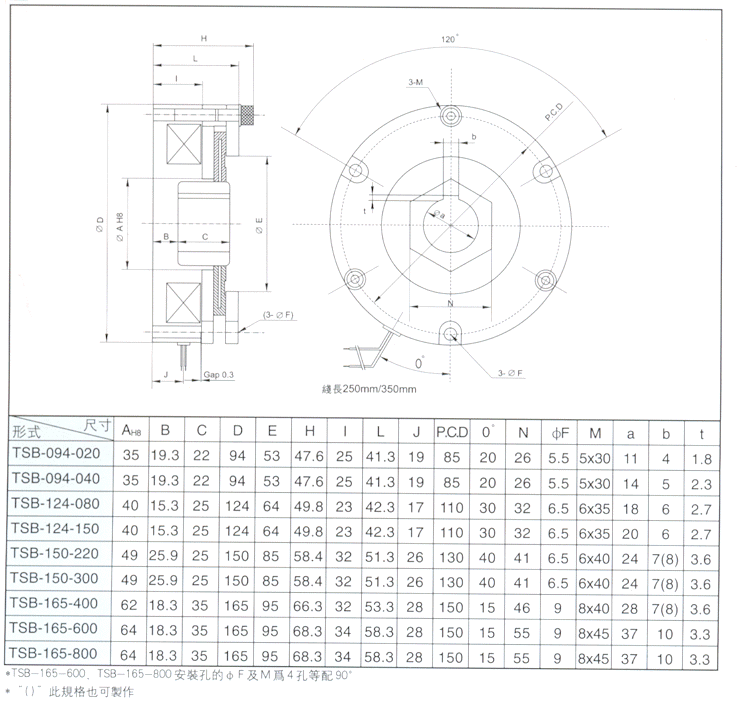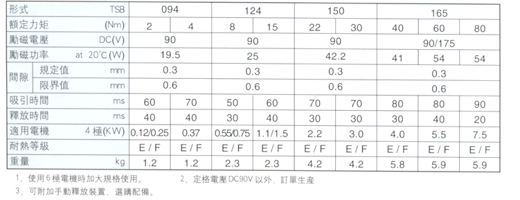 TSB形式,乾式復板無勵磁動作形彈簧制動方式剎車,斷電時能夠急速停止機械動作,