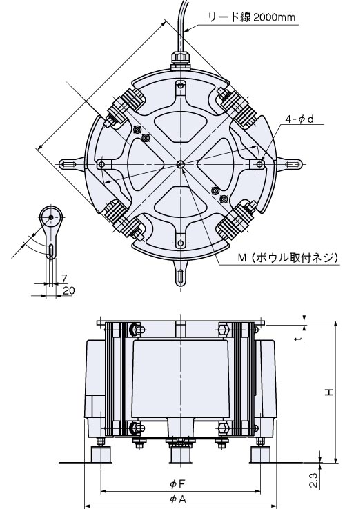(2)ボウル標準取付けは周囲4箇所(4-φ3d)です。