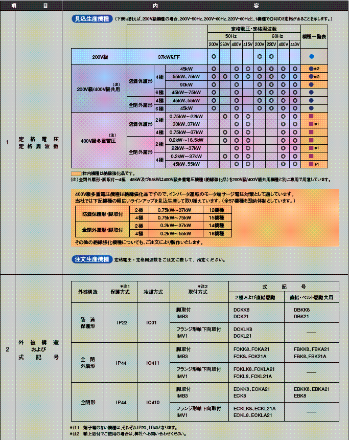 |標(biāo)準(zhǔn)型電機仕様