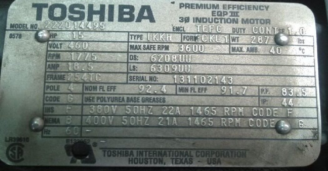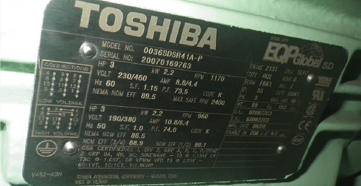 多種雙電壓規格190V.380V/230V.460V東芝電機,東芝電動機等。