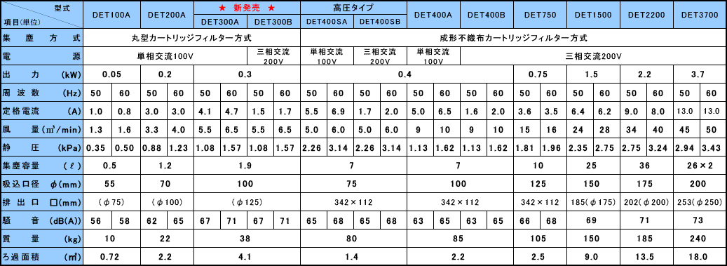 淀川 墨盒過濾器式 集塵機(DET系列) 型號、性能參數與質量
