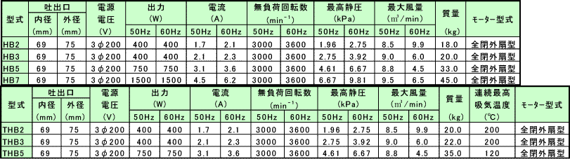 淀川電動(dòng)送風(fēng)機(jī) 渦輪Turbo系列 型號(hào)、性能參數(shù)與質(zhì)量